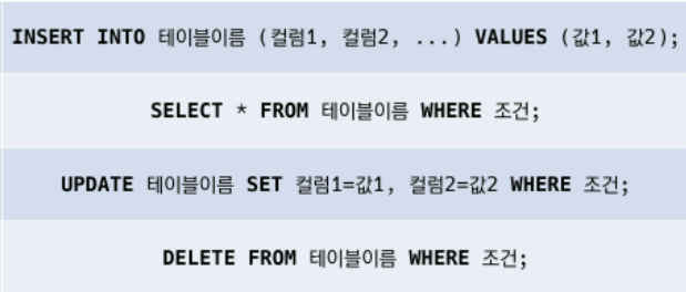 - 데이터를 저장, 조회, 수정, 삭제, 등을 하기 위한 명령어