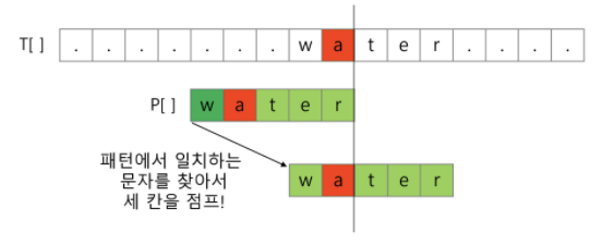 - 패턴의 오른쪽 끝에 있는 문자가 불일치 + 이 문자가 패턴 내에 존재할 경우
