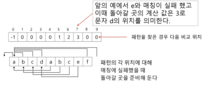# 사전작업 : 매칭이 실패했을 때 패턴의 어느 인덱스로 돌아가야 하는지 계산