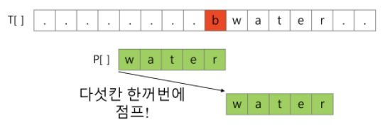 - 불일치가 발생한 텍스트 스트링의 앞부분에 어떤 문자가 있는지를 미리 알고 있으므로, 불일치가 발생한 앞부분에 대하여 다시 비교하지 않고 매칭을 수행