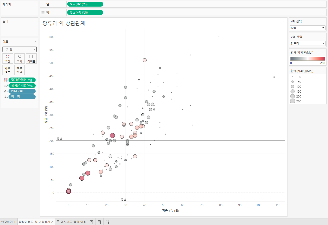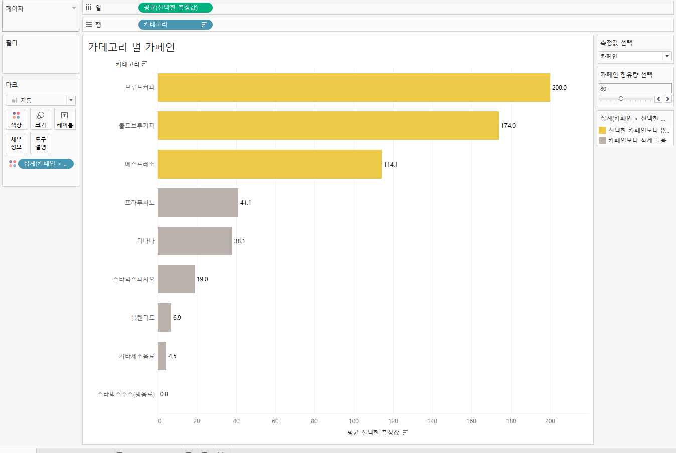 - 매개변수 : 측정값 선택, 카페인 함유량 선택