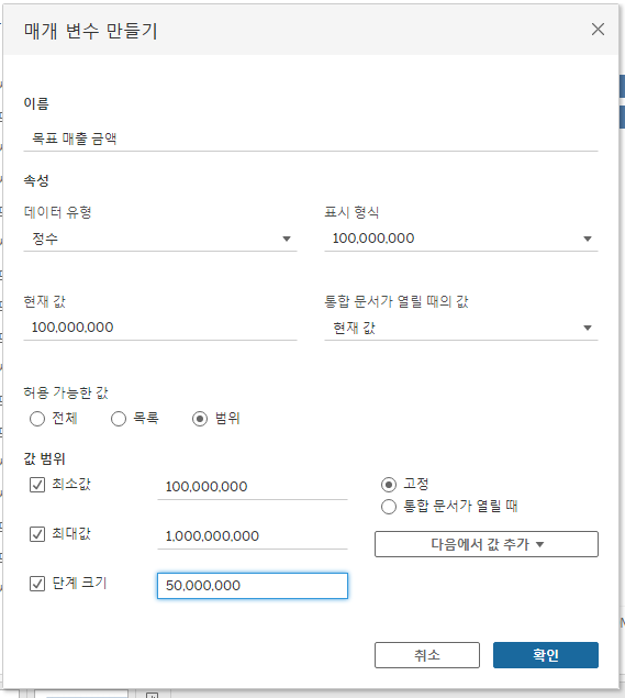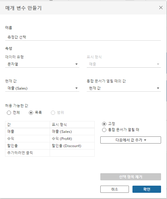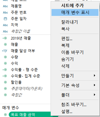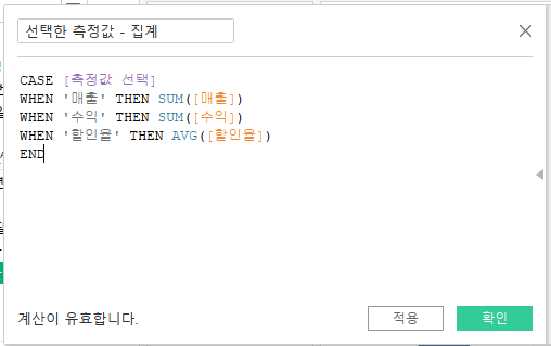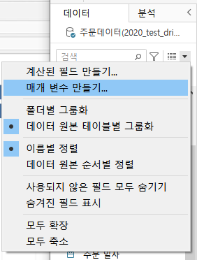 - 매개변수 생성 -> 계산식 생성 -> 분석에 활용