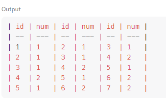 , LEAD(num,1) OVER (ORDER BY id) AS next_1