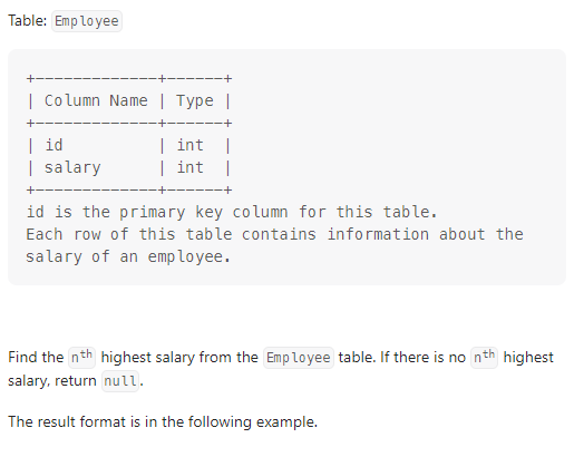 https://leetcode.com/problems/nth-highest-salary/