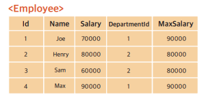 , MAX(Salary) OVER (PARTITION BY DepartmentId) AS MaxSalary