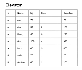 WHERE e1.Id = e2.Id AND e1.Line >= e2.Line) AS CumSum