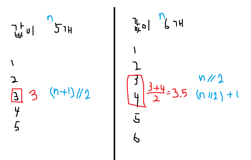 - 중앙값의 위치는 (N+1)//2