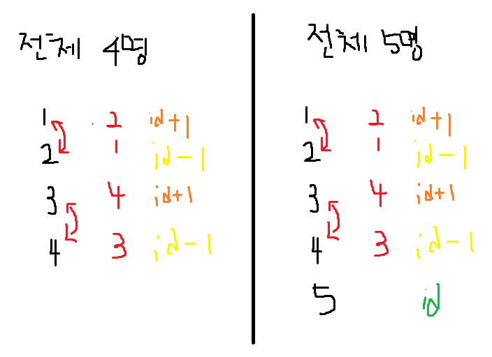 - 홀수번째 아이와 짝수번째 아이의 자리 바꾸기