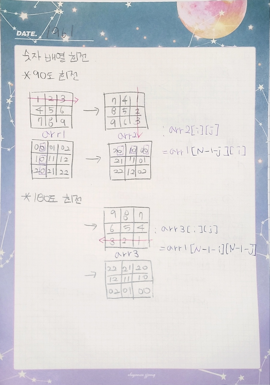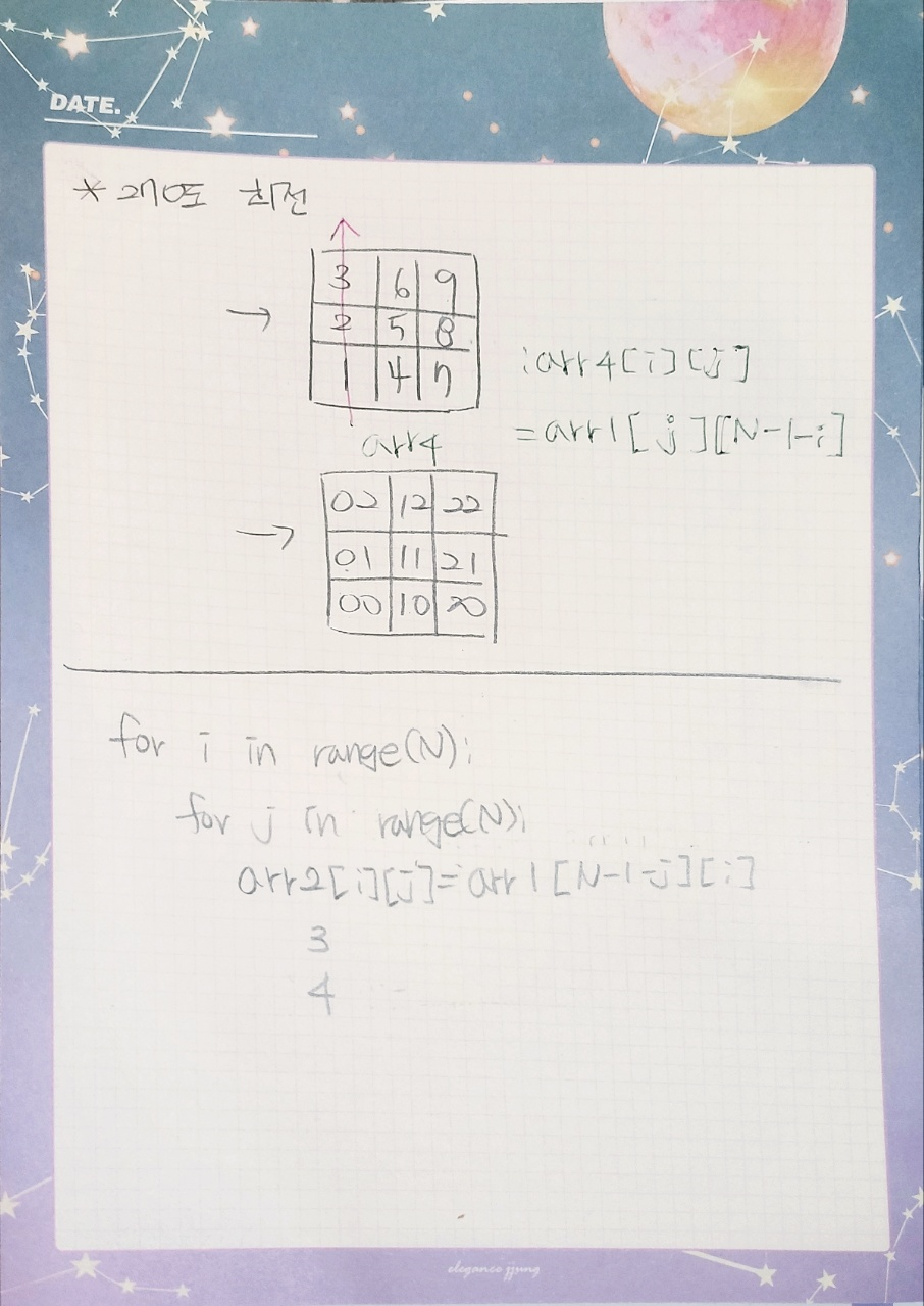 시계 방향으로 90도, 180도, 270도 회전한 모양을 출력하라.