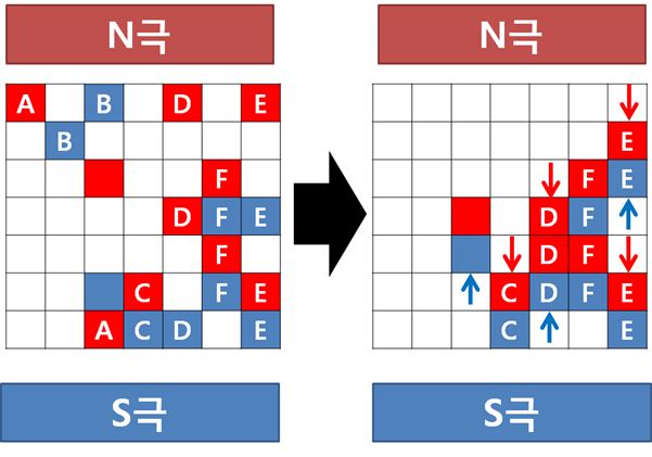 D로 표시된 자성체들에서 알 수 있듯 한쪽 방향으로 움직이는 자성체의 개수가 많더라도 반대 방향으로 움직이는 자성