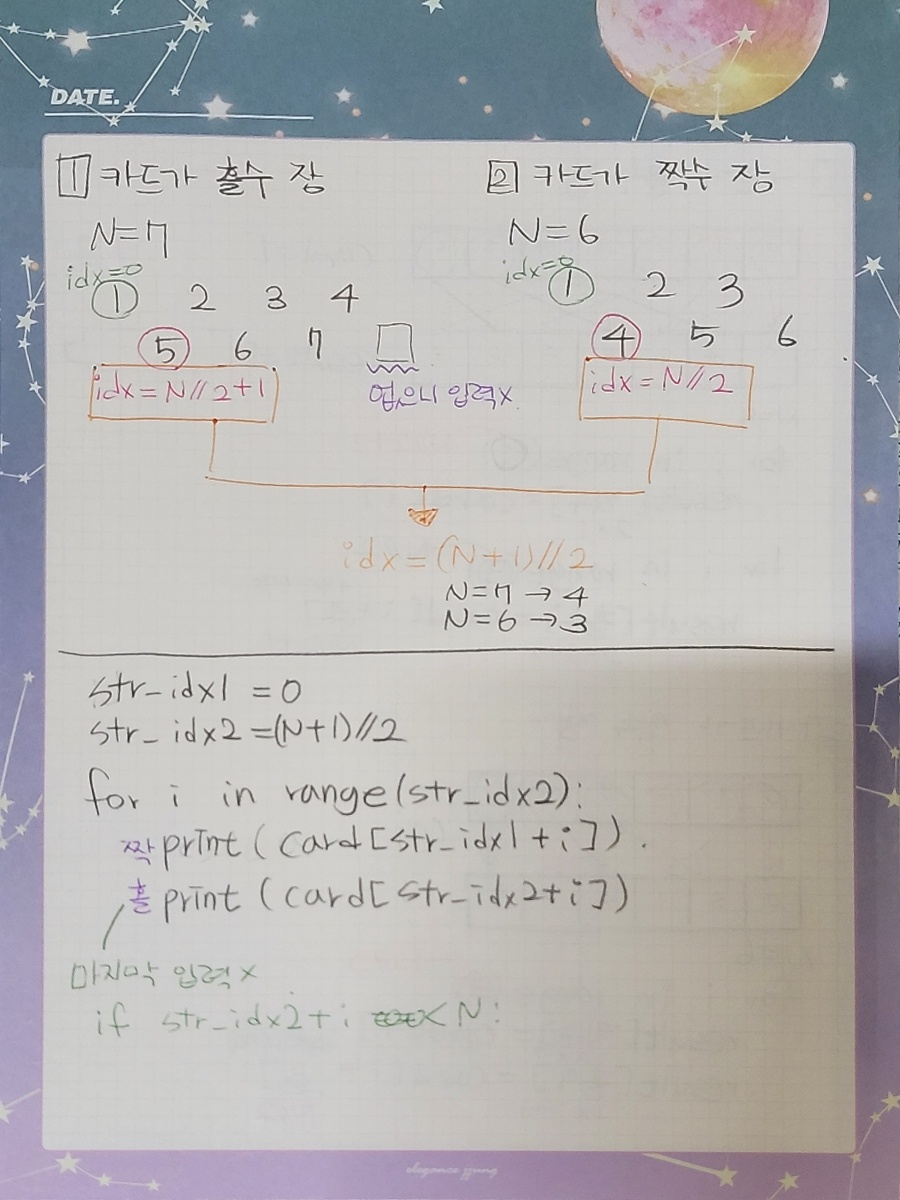 만약 N이 홀수이면, 교대로 놓을 때 먼저 놓는 쪽에 한 장이 더 들어가게 하면 된다.