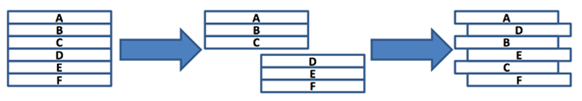 카드를 퍼펙트 셔플 한다는 것은, 카드 덱을 정확히 절반으로 나누고 나눈 것들에서 교대로 카드를 뽑아 새로운 덱을 만