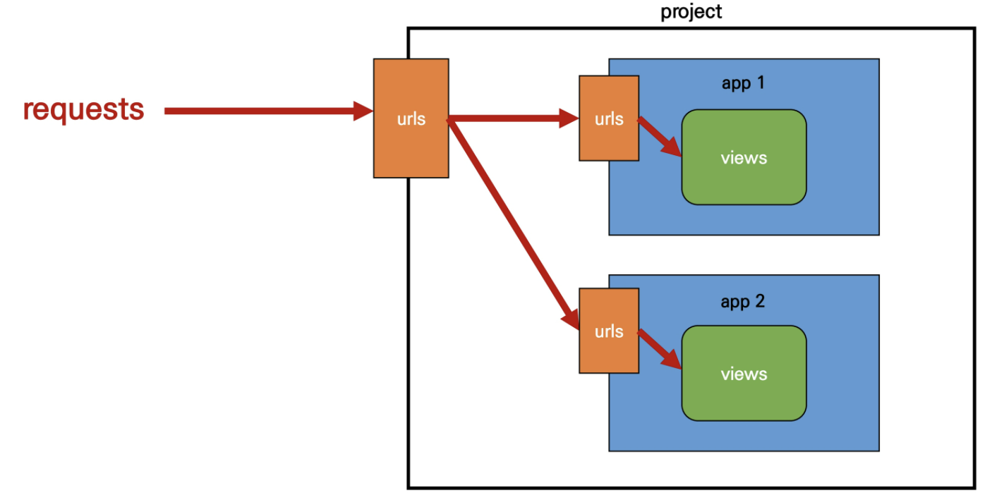 - app의 view함수가 많아지면서 사용하는 path() 또한 많아지고, app 또한 더 많이 작성되기 때문에 프로젝트의 urls.py에서 모두 관리하는 것은 프로젝트 유지보수에 좋지 않음