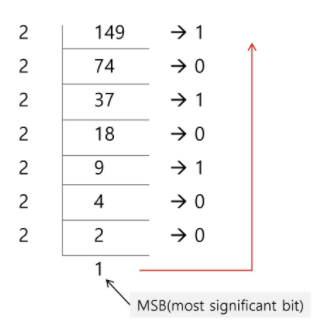 - 8bit인 경우 -128~127까지 256가지 표현 가능